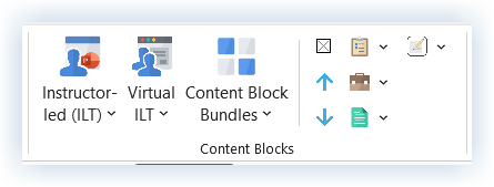 Virtual ILT Click this button to access a drop-down menu of Content Blocks to help guide Virtual Instructor-led Training.